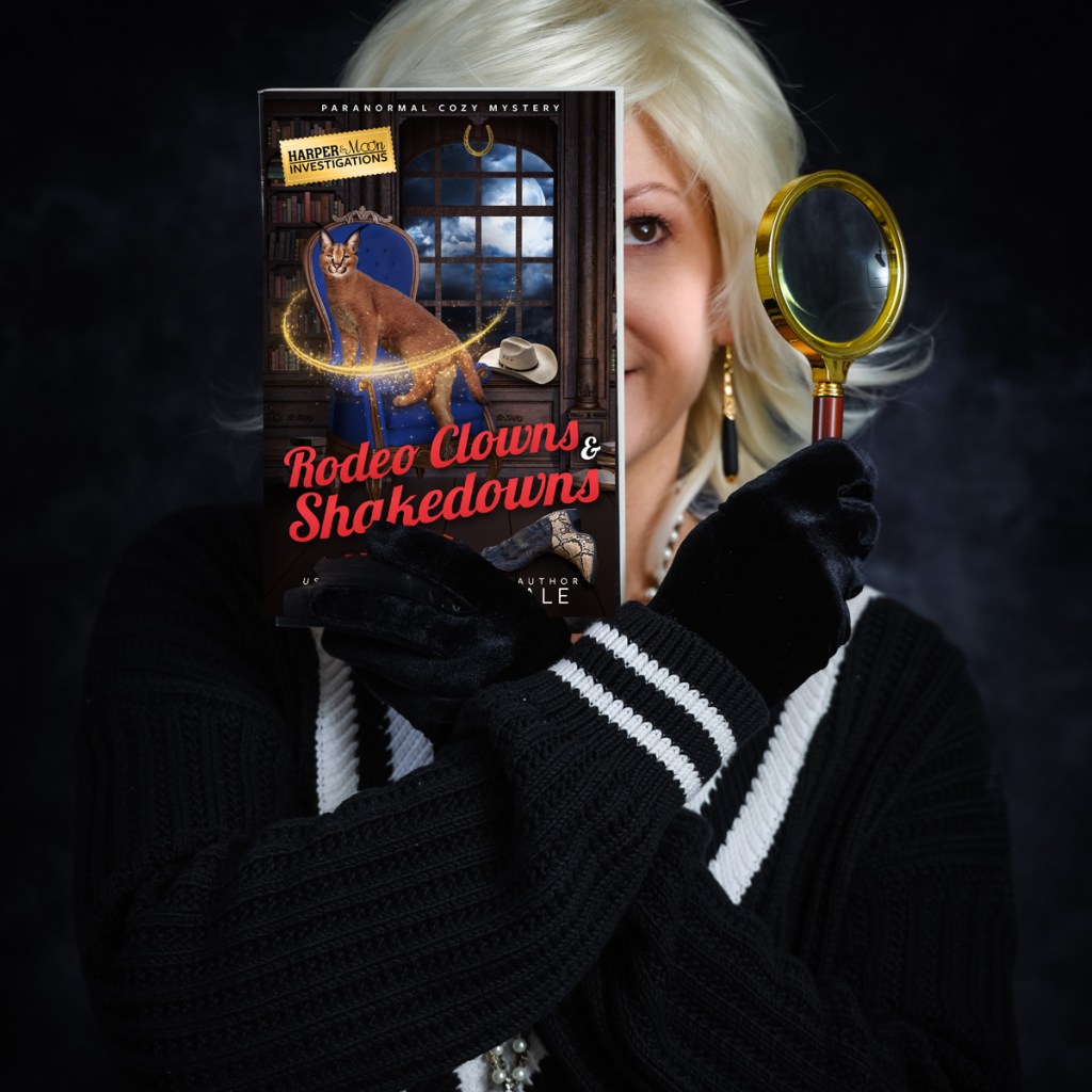 Rodeo Clowns and Shakedowns is the second book in the hilarious new paranormal cozy mystery series, Harper and Moon Investigations, a spinoff from the popular Mitzy Moon Mysteries. If you like snarky heroines, supernatural intrigue, and a dash of romance, then you’ll love Trixie Silvertale’s bucking brainteaser.